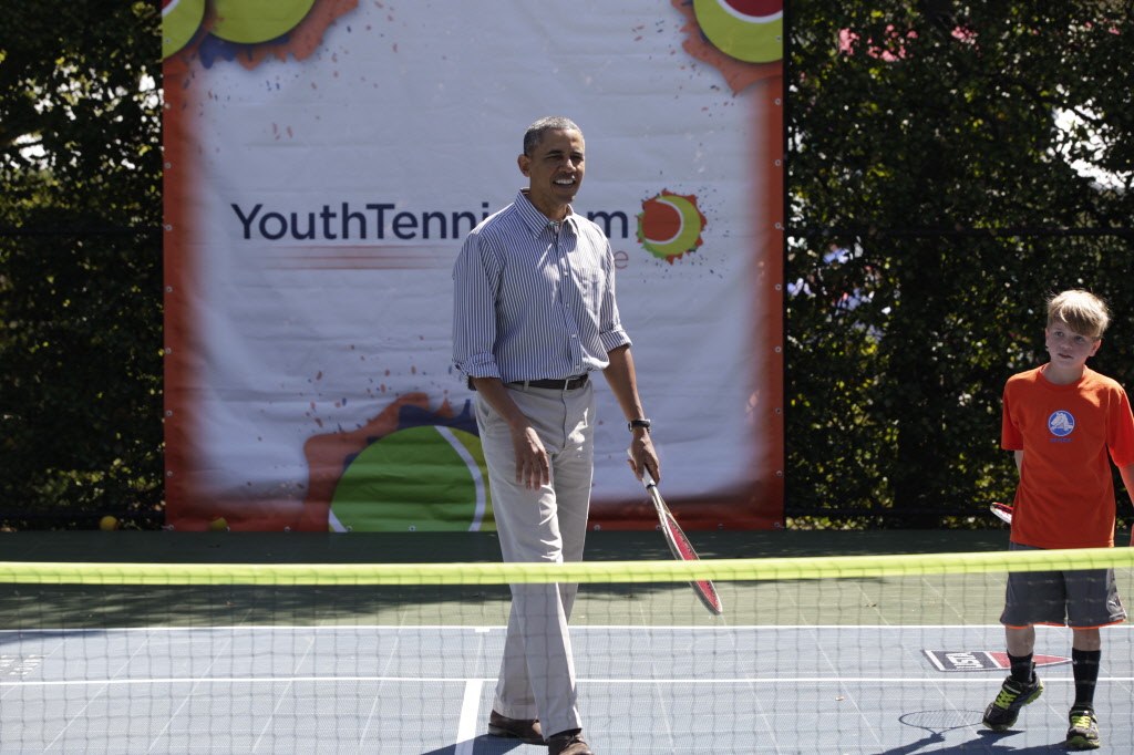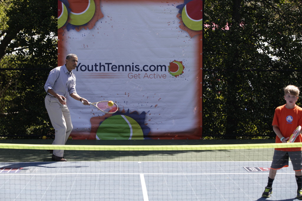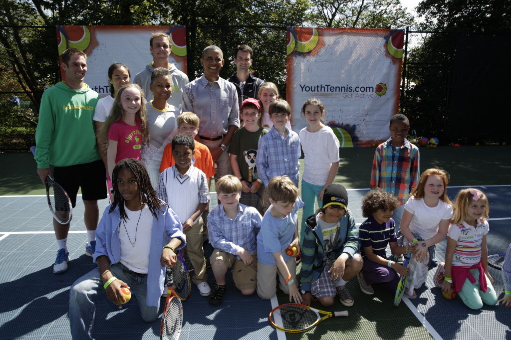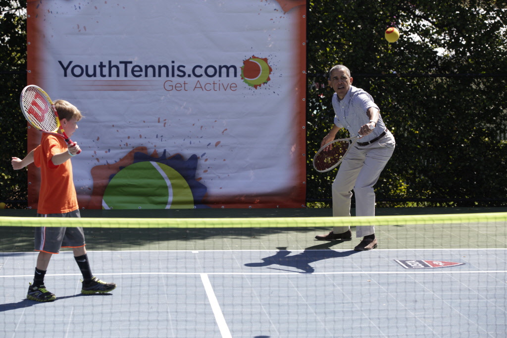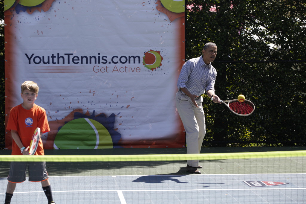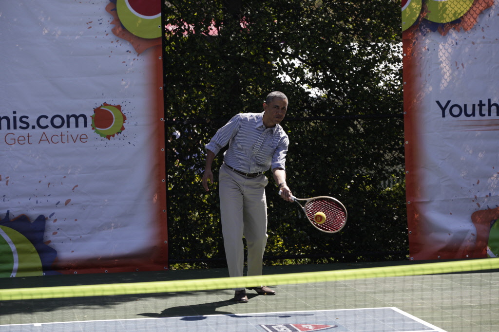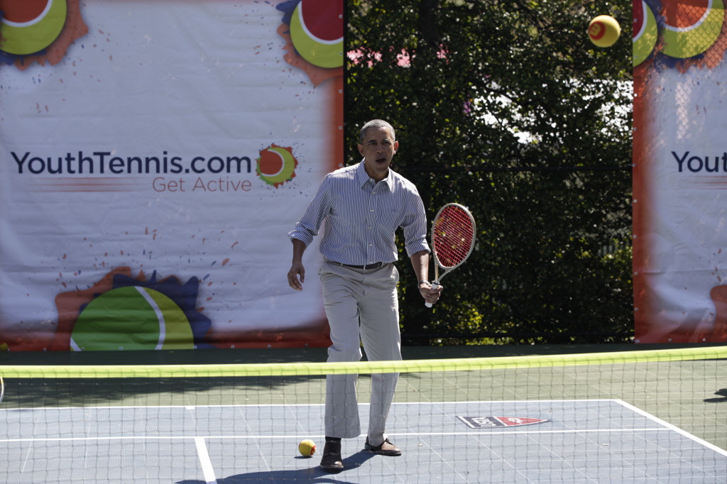 This contains photographs of the President and First Lady (along with their daughters) greeting participants and guests; delivering remarks; cheering on participants at the starting line of the Easter Egg Roll; and reading to children. There are also photos of President Obama participating in basketball and tennis clinics, Mrs. Obama being interviewed by the media, and