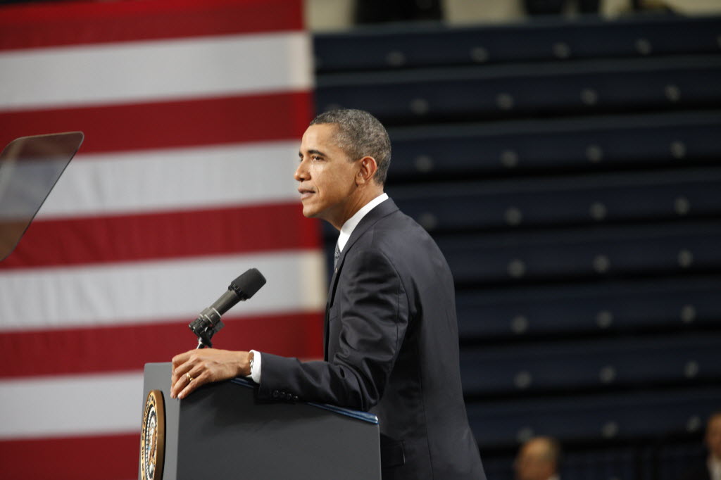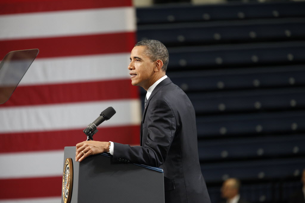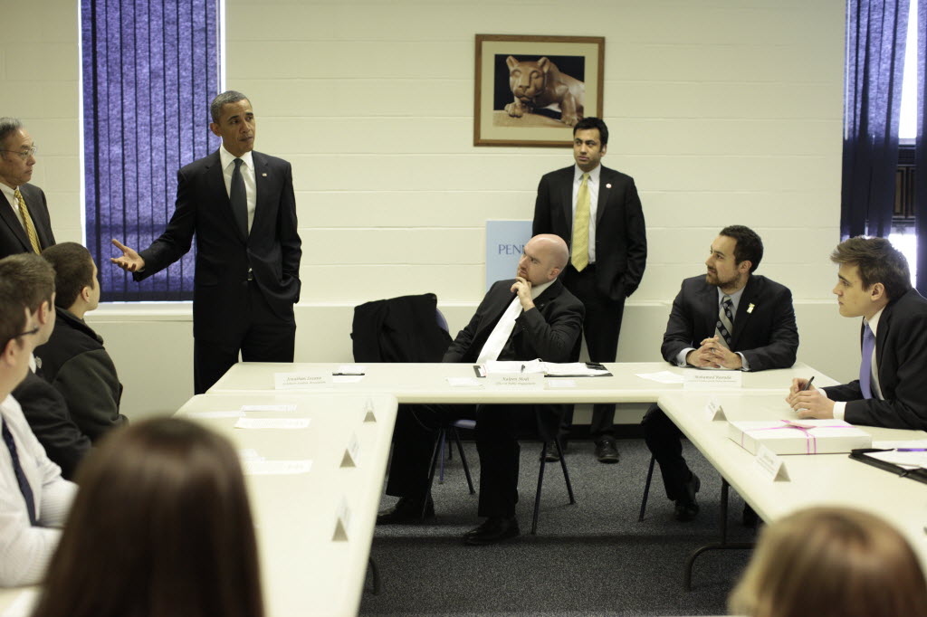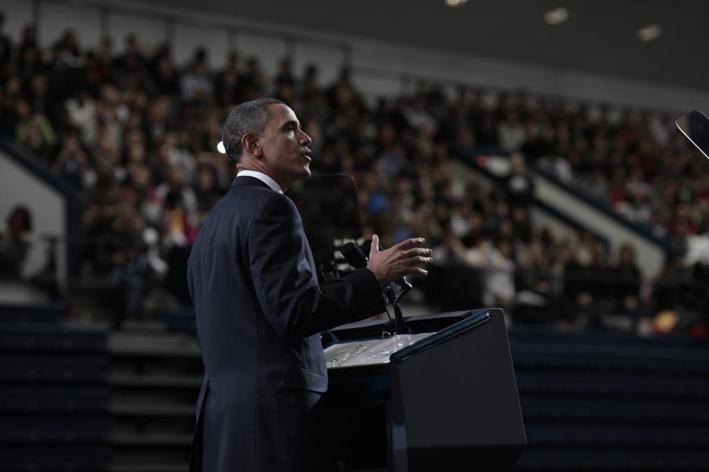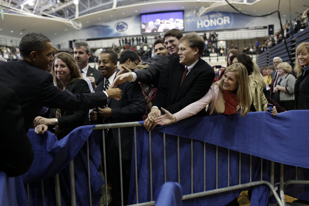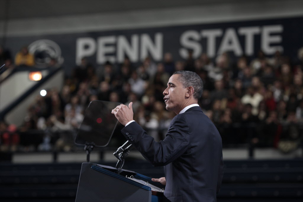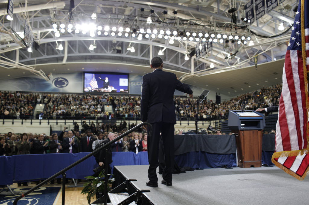 Photographs of President Obama at Penn State University, February 3, 2011 (24-58885-F)