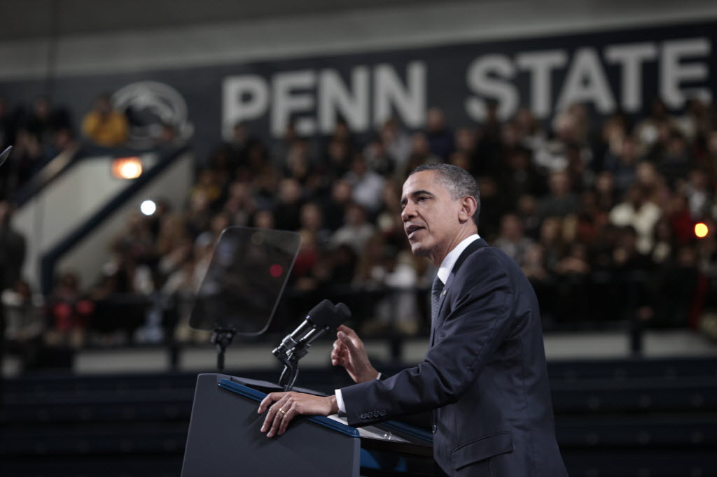 Photographs of President Obama at Penn State University, February 3, 2011 (24-58885-F)
