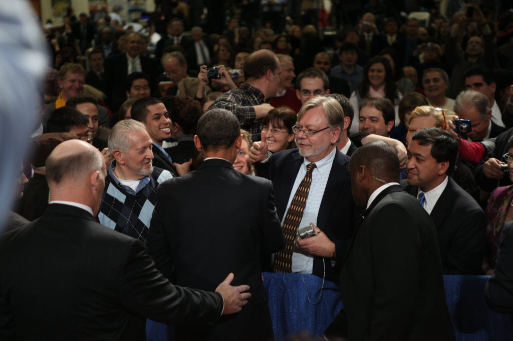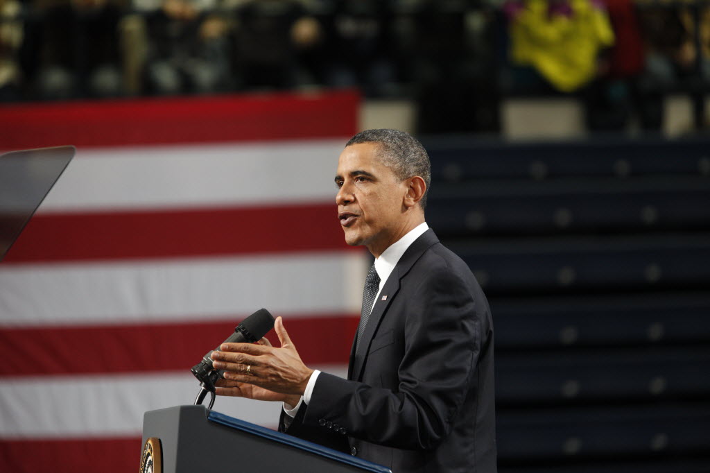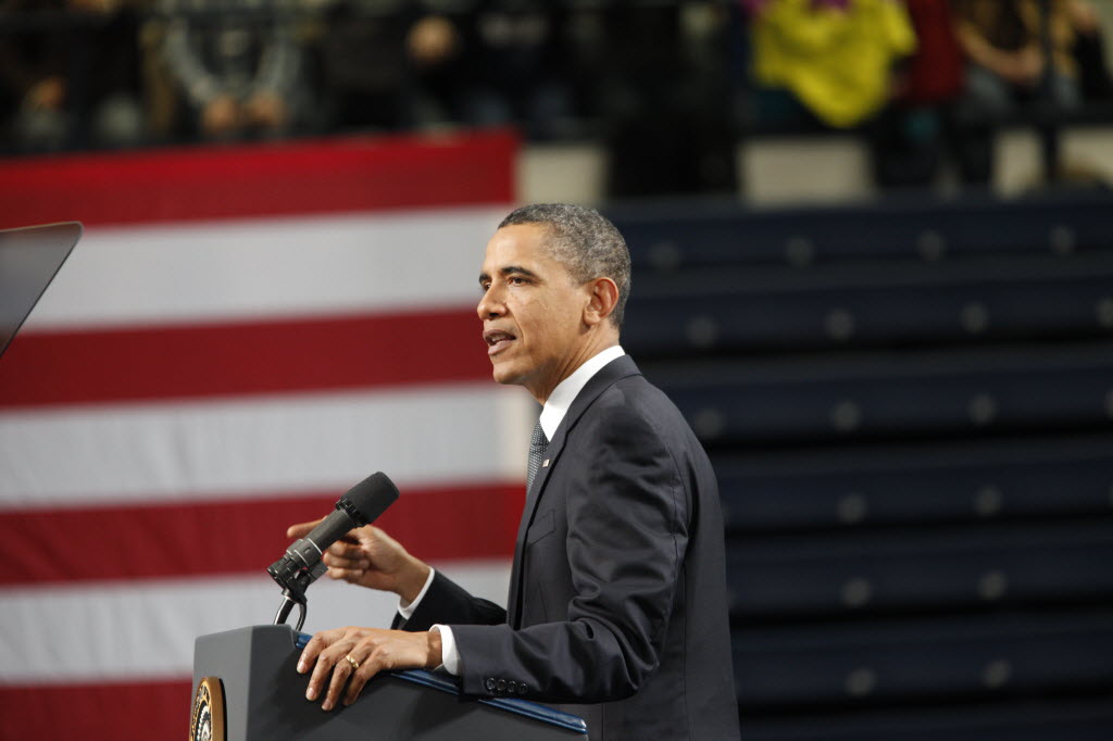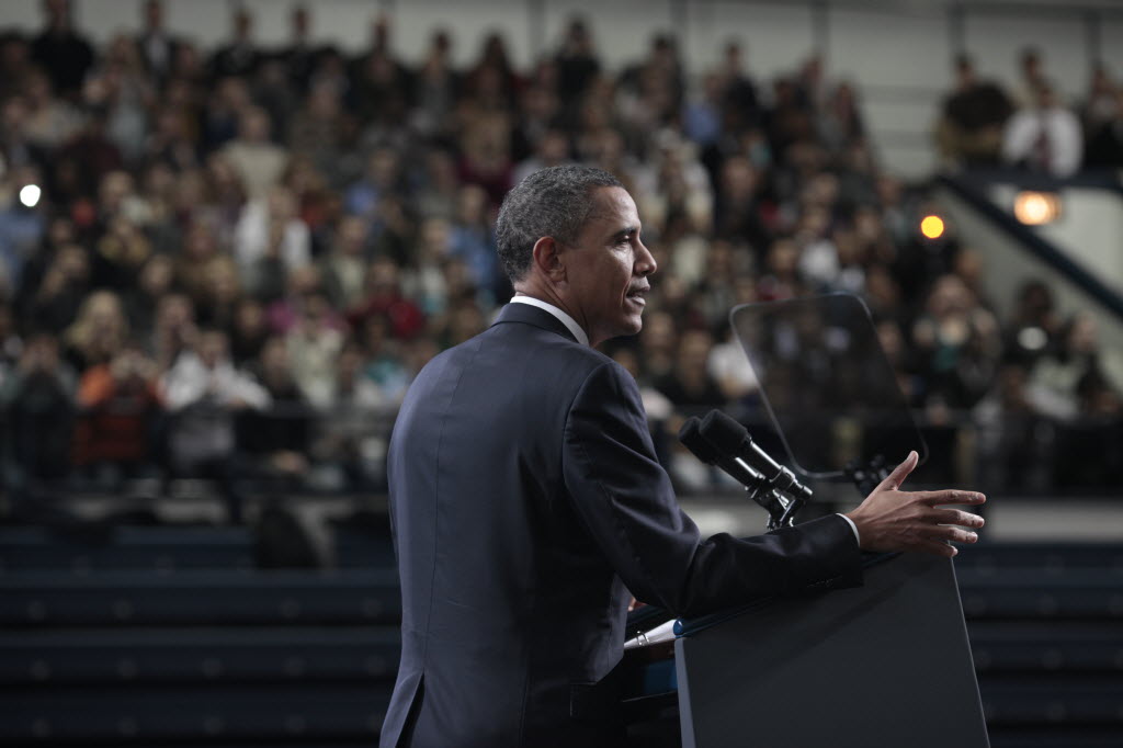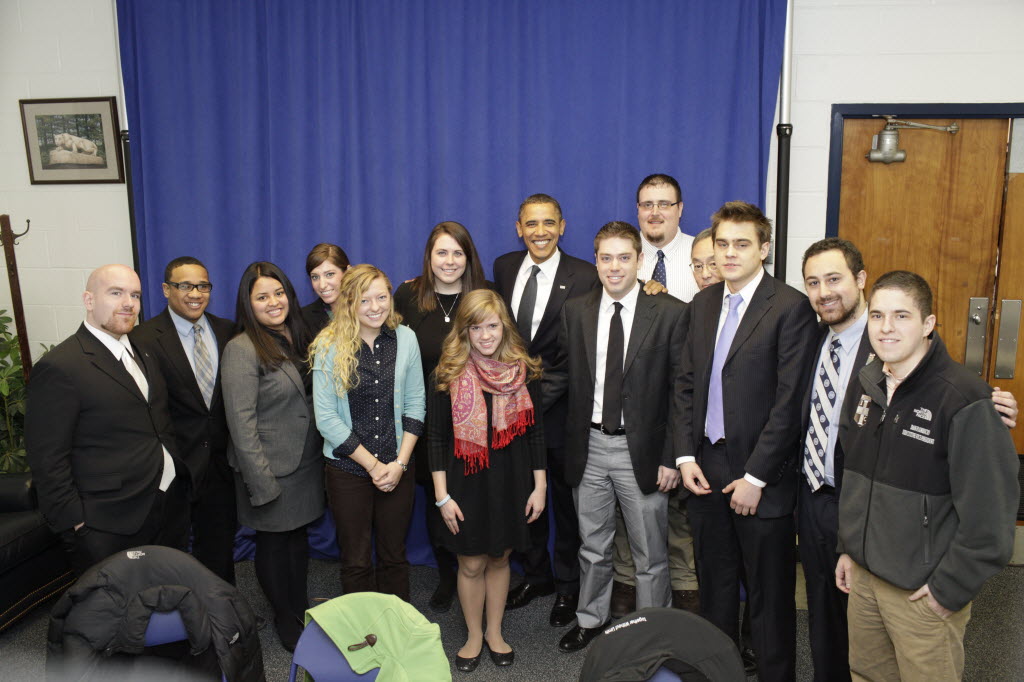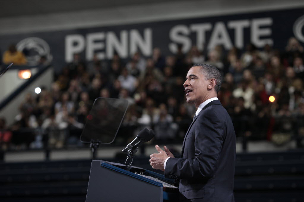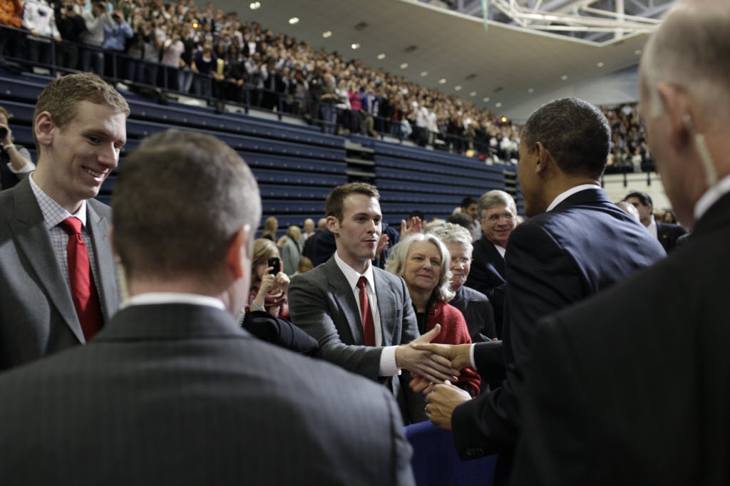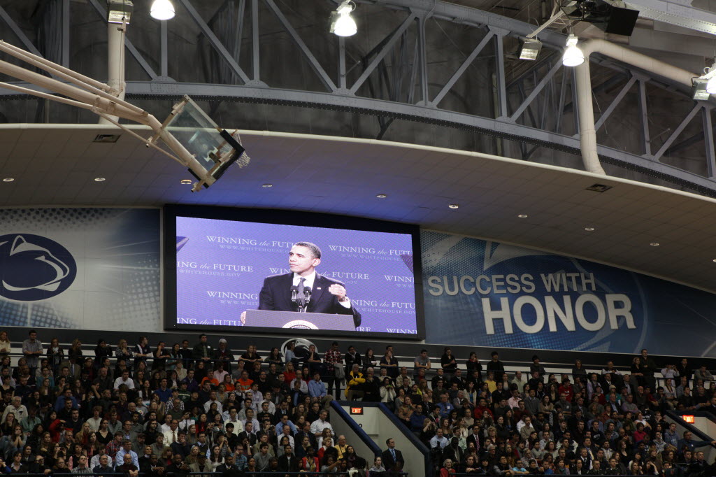 Photographs of President Obama at Penn State University, February 3, 2011 (24-58885-F)