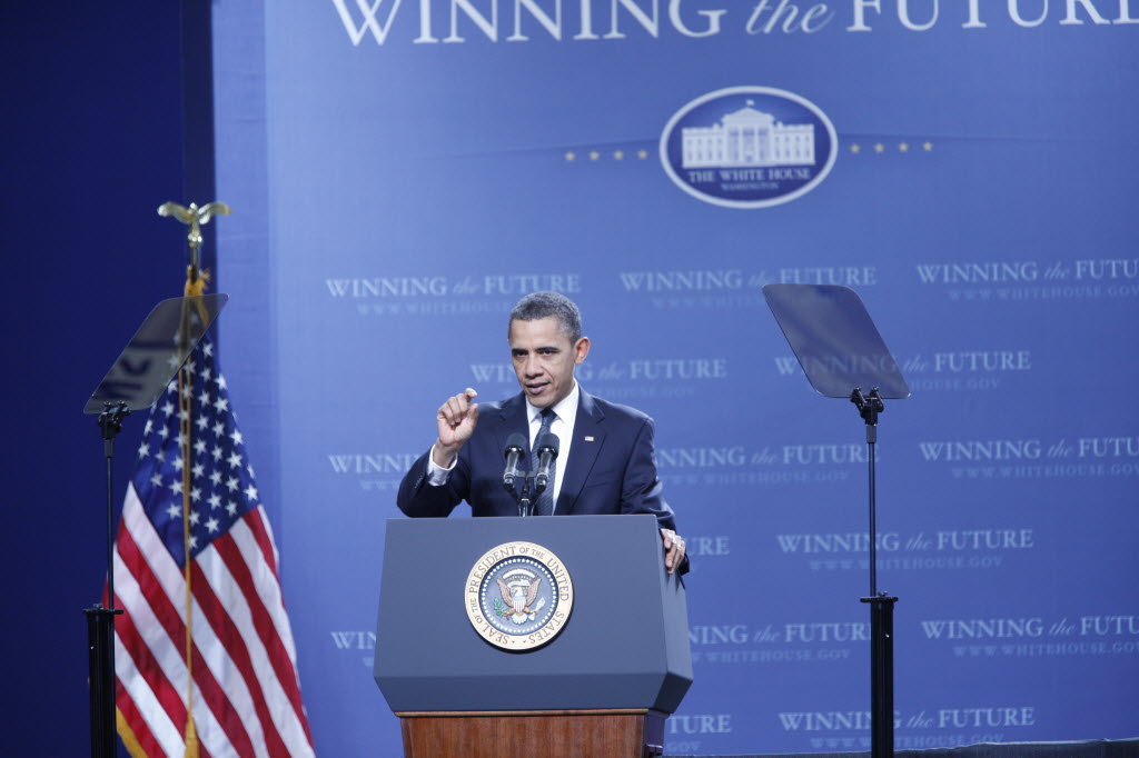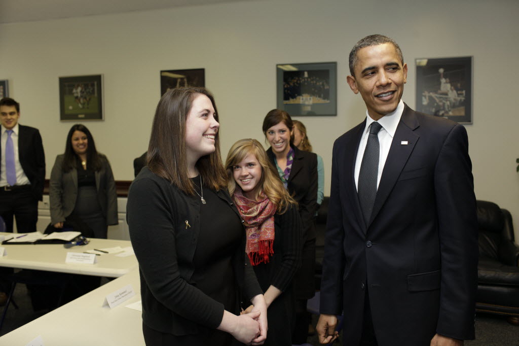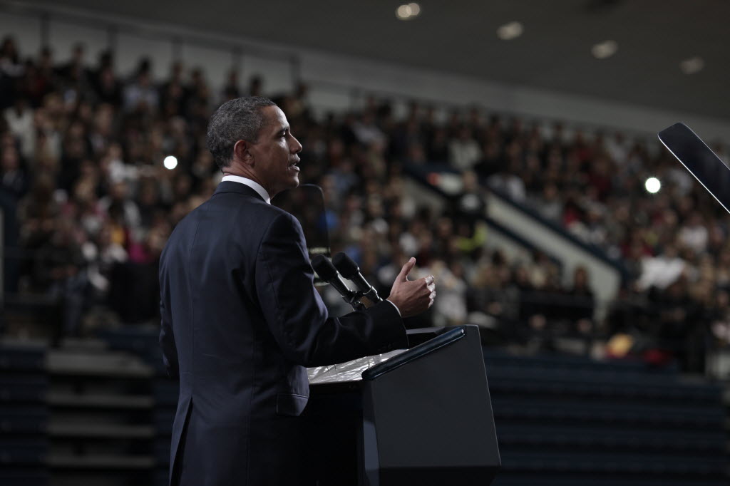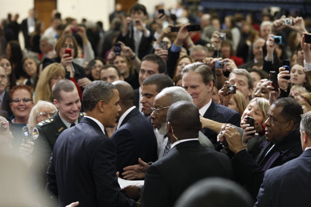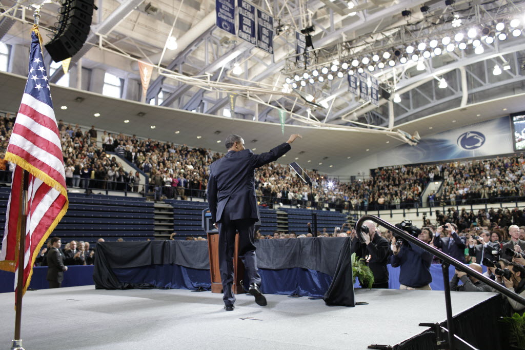 Photographs of President Obama at Penn State University, February 3, 2011 (24-58885-F)