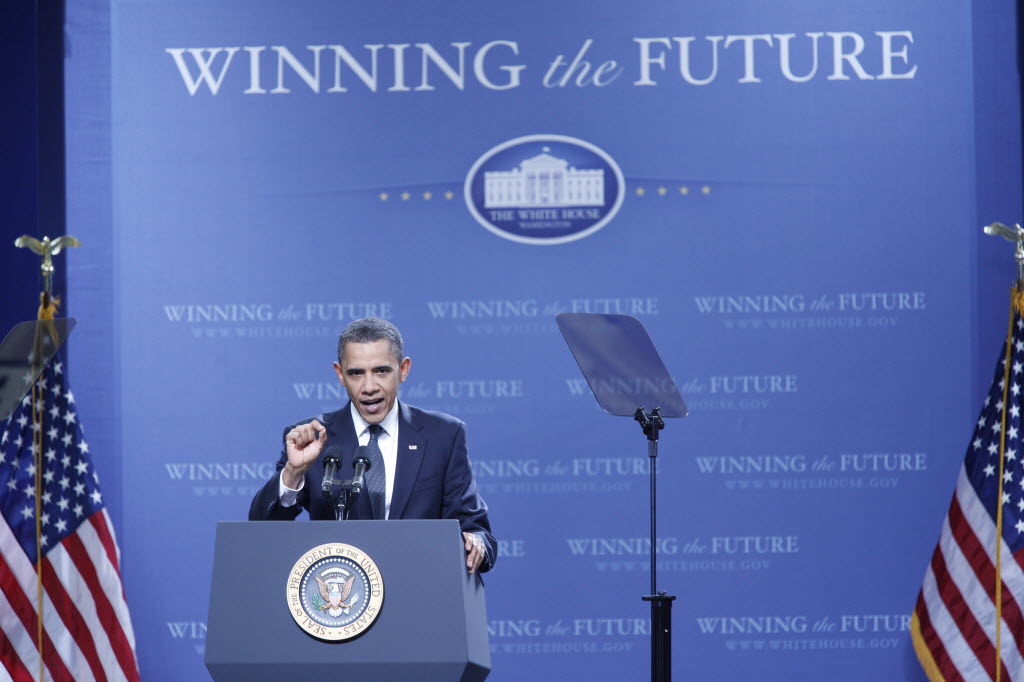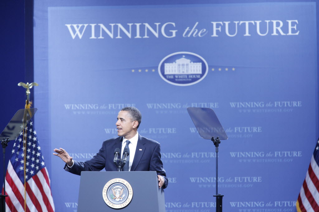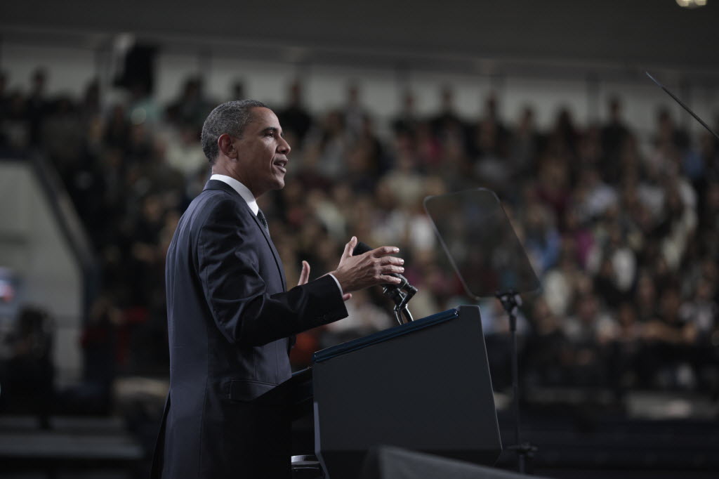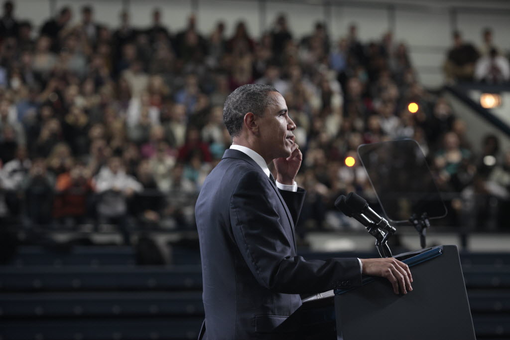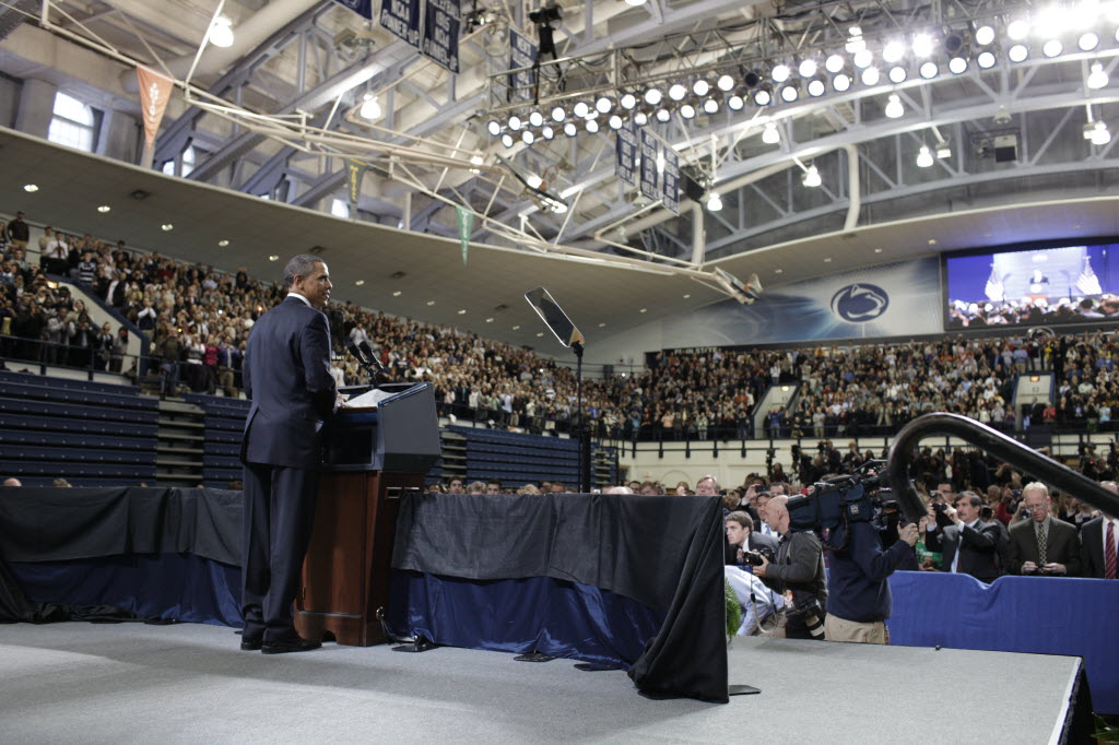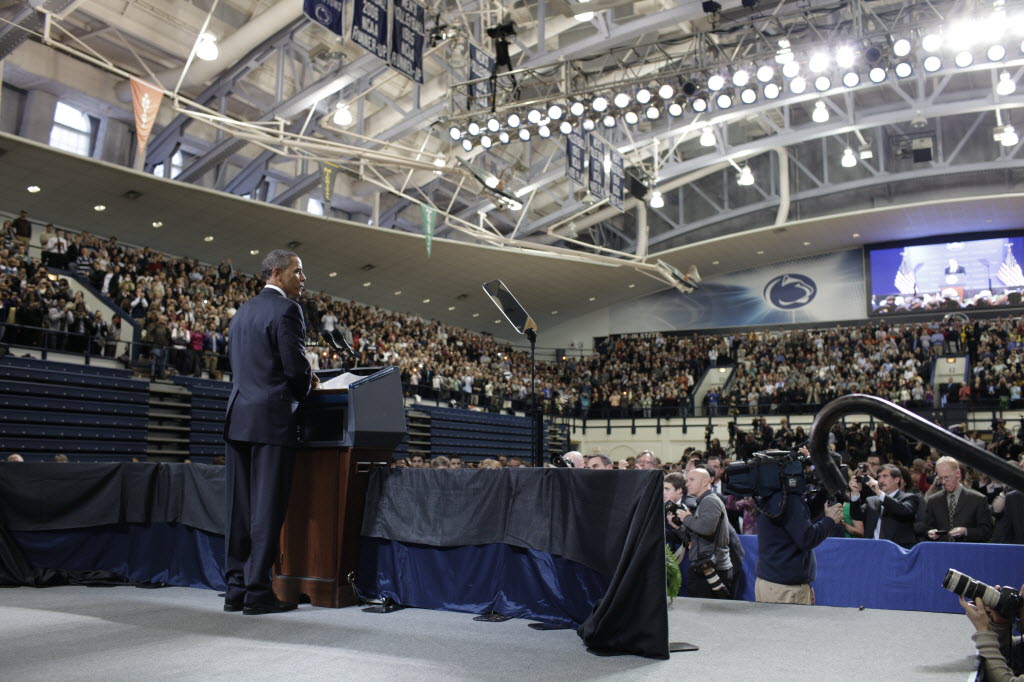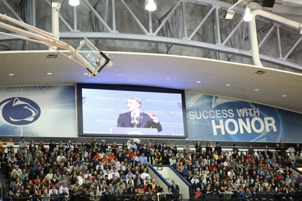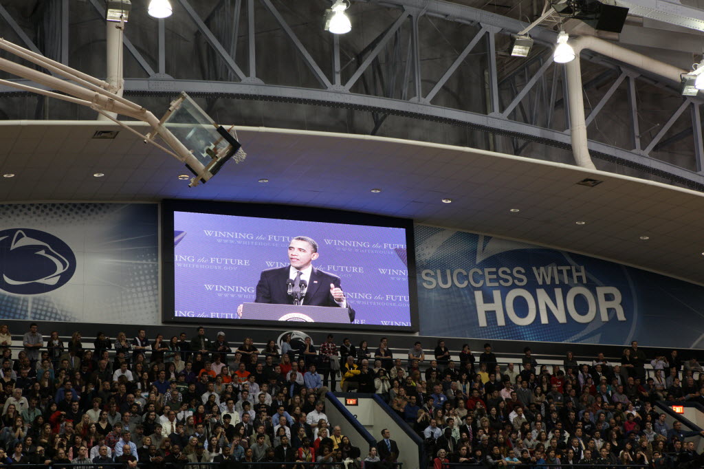 Photographs of President Obama at Penn State University, February 3, 2011 (24-58885-F)