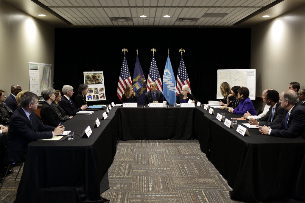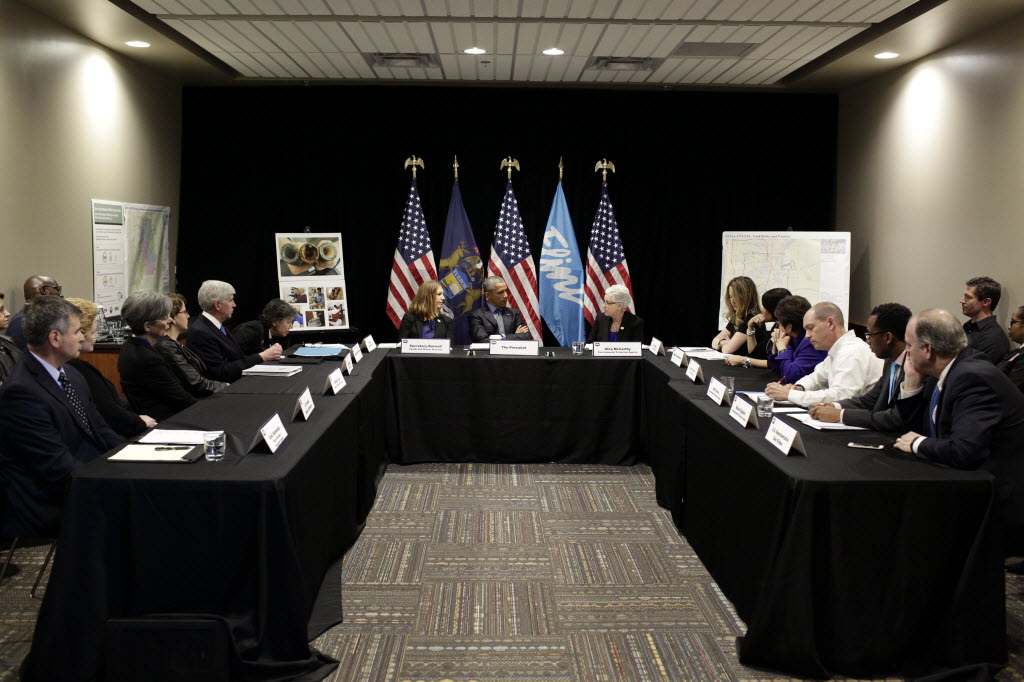 This FOIA primarily contains photographs of President Obama traveling to and from Flint, Michigan; receiving a briefing on the Flint public health water crisis during a meeting with federal responders at the Food Bank of Eastern Michigan, meeting with local residents to discuss the public health water crisis during a neighborhood listening roundtable at Northwestern High School, and delivering remarks on the public health water crisis, all in Flint, Michigan; and President Obama delivering remarks at the Asian Pacific American Institute of Congressional Studies 22nd annual awards gala dinner at the Washington Hilton in Washington, D.C.