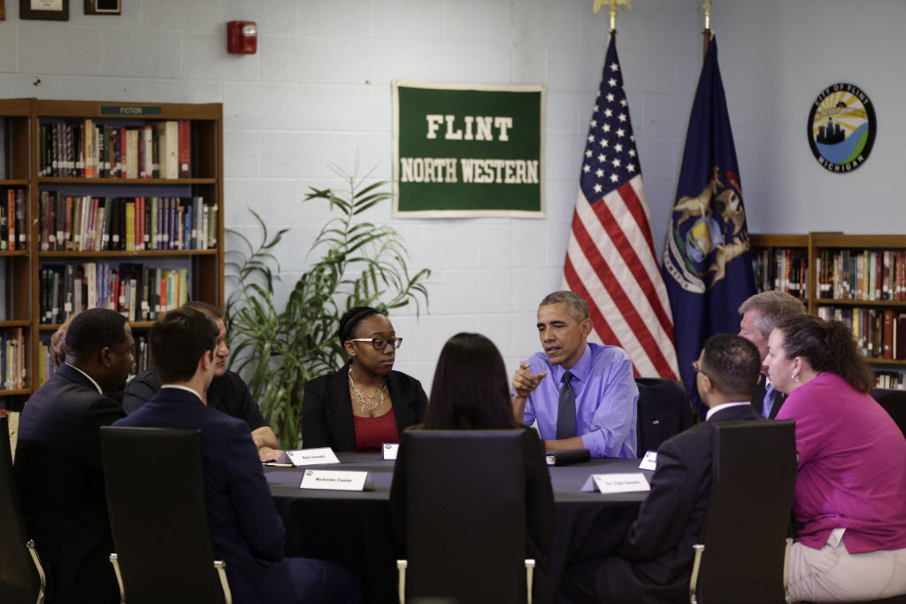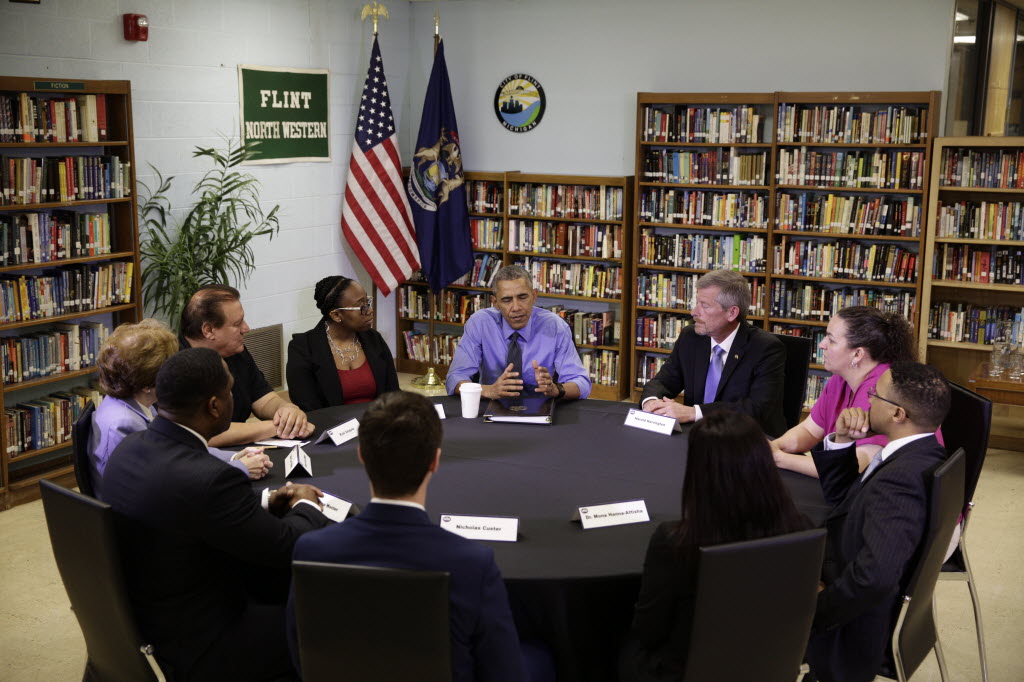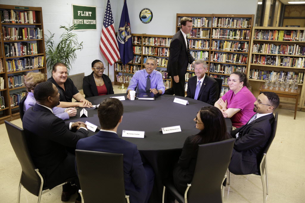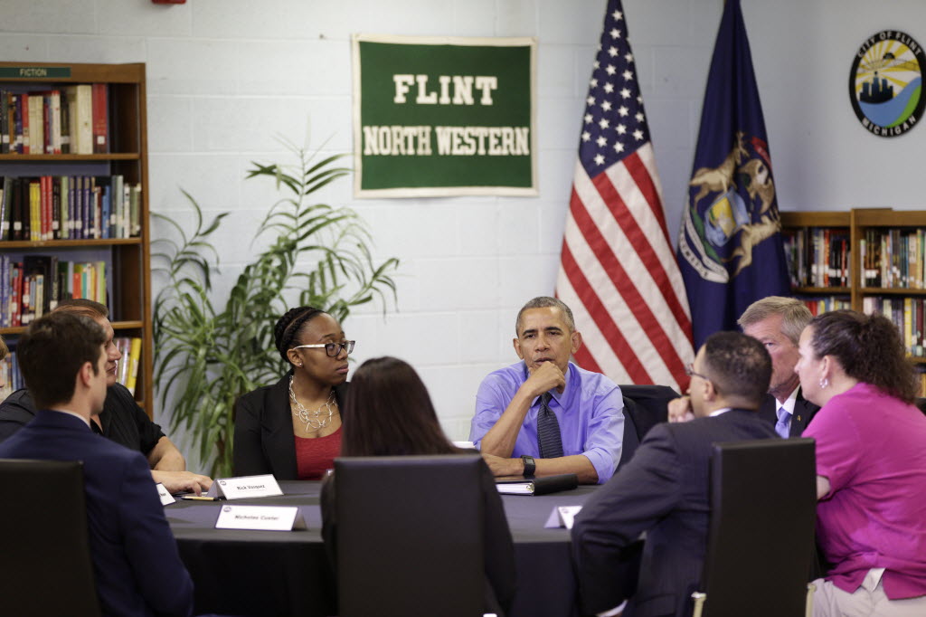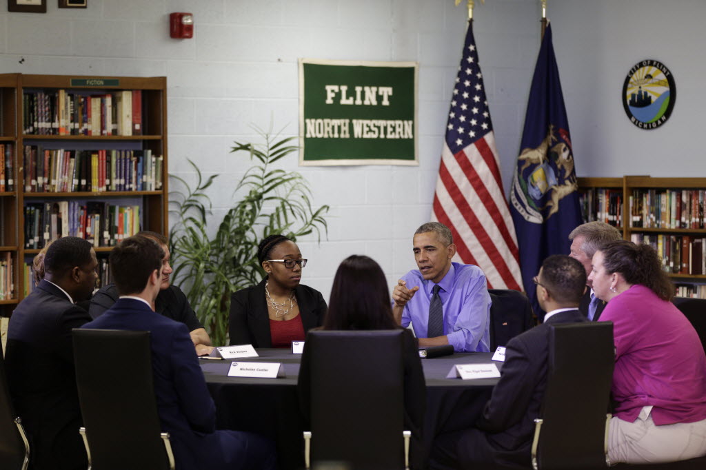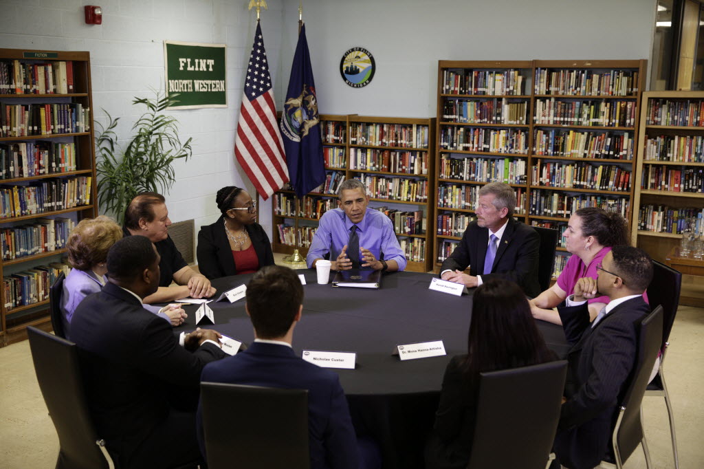 This FOIA primarily contains photographs of President Obama traveling to and from Flint, Michigan; receiving a briefing on the Flint public health water crisis during a meeting with federal responders at the Food Bank of Eastern Michigan, meeting with local residents to discuss the public health water crisis during a neighborhood listening roundtable at Northwestern High School, and delivering remarks on the public health water crisis, all in Flint, Michigan; and President Obama delivering remarks at the Asian Pacific American Institute of Congressional Studies 22nd annual awards gala dinner at the Washington Hilton in Washington, D.C.