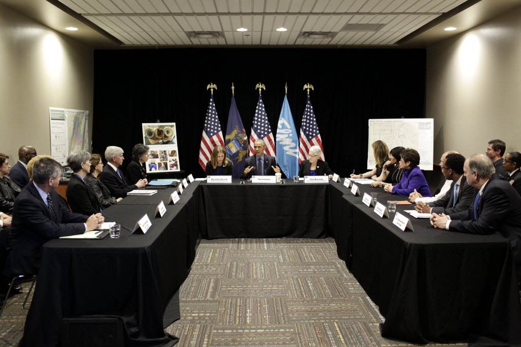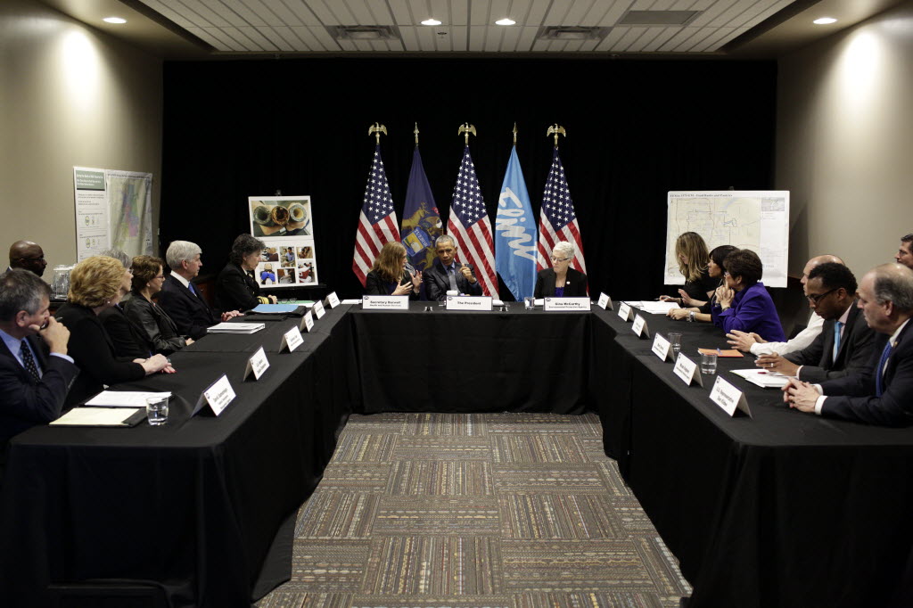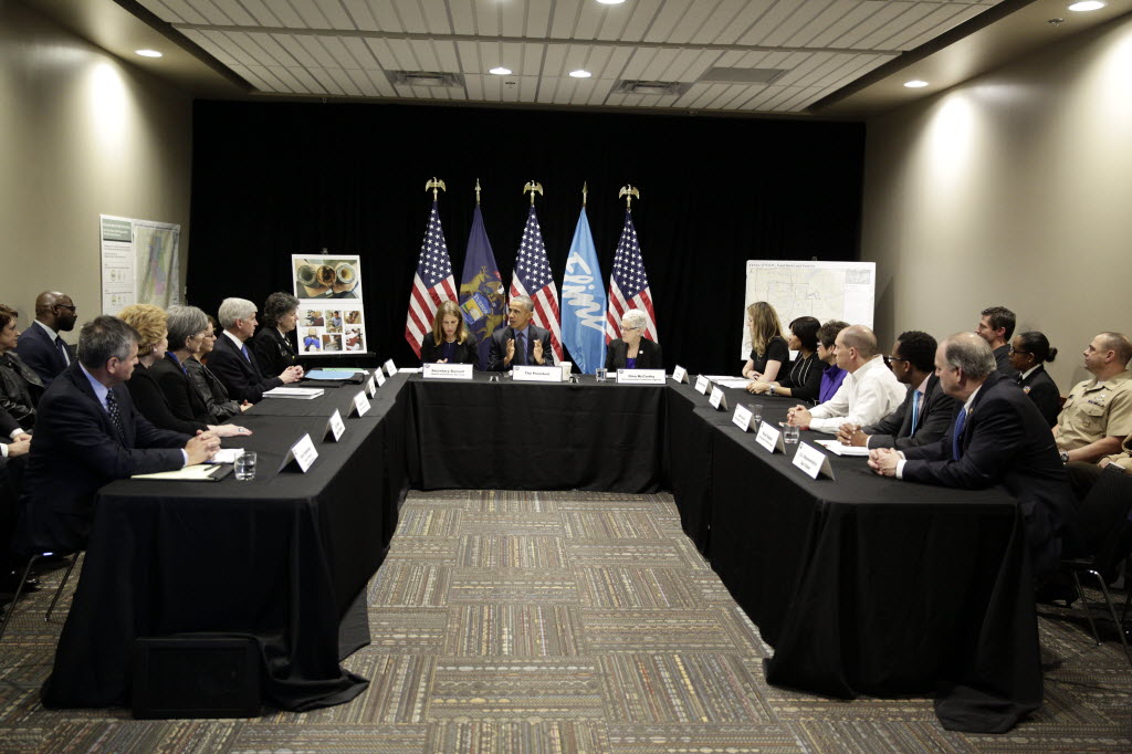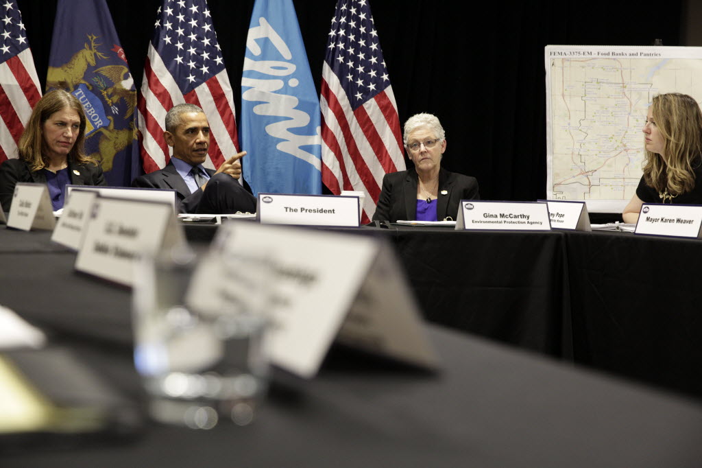 This FOIA primarily contains photographs of President Obama traveling to and from Flint, Michigan; receiving a briefing on the Flint public health water crisis during a meeting with federal responders at the Food Bank of Eastern Michigan, meeting with local residents to discuss the public health water crisis during a neighborhood listening roundtable at Northwestern High School, and delivering remarks on the public health water crisis, all in Flint, Michigan; and President Obama delivering remarks at the Asian Pacific American Institute of Congressional Studies 22nd annual awards gala dinner at the Washington Hilton in Washington, D.C.