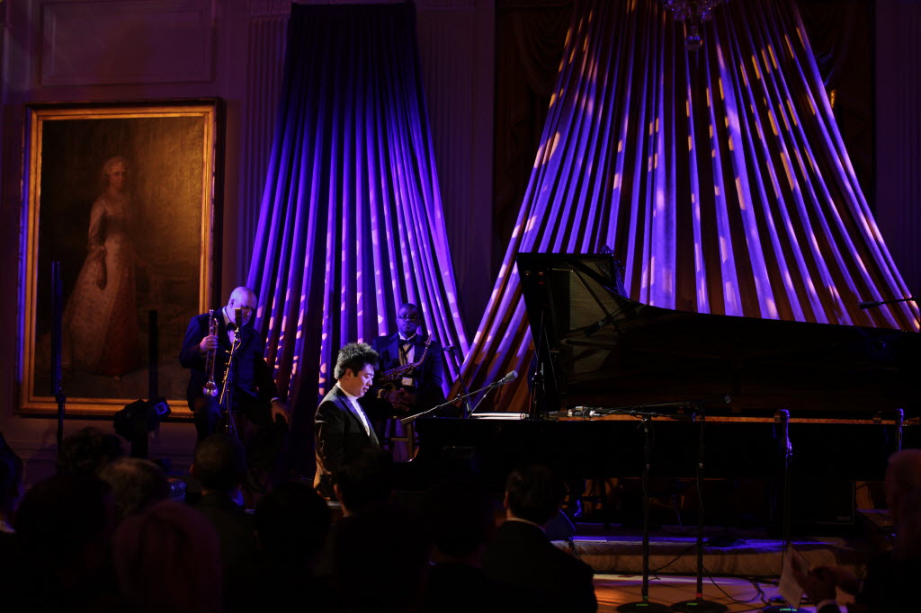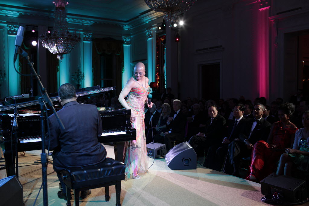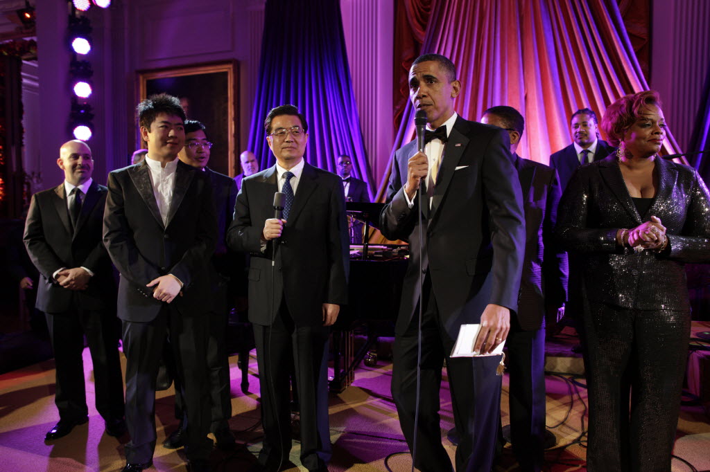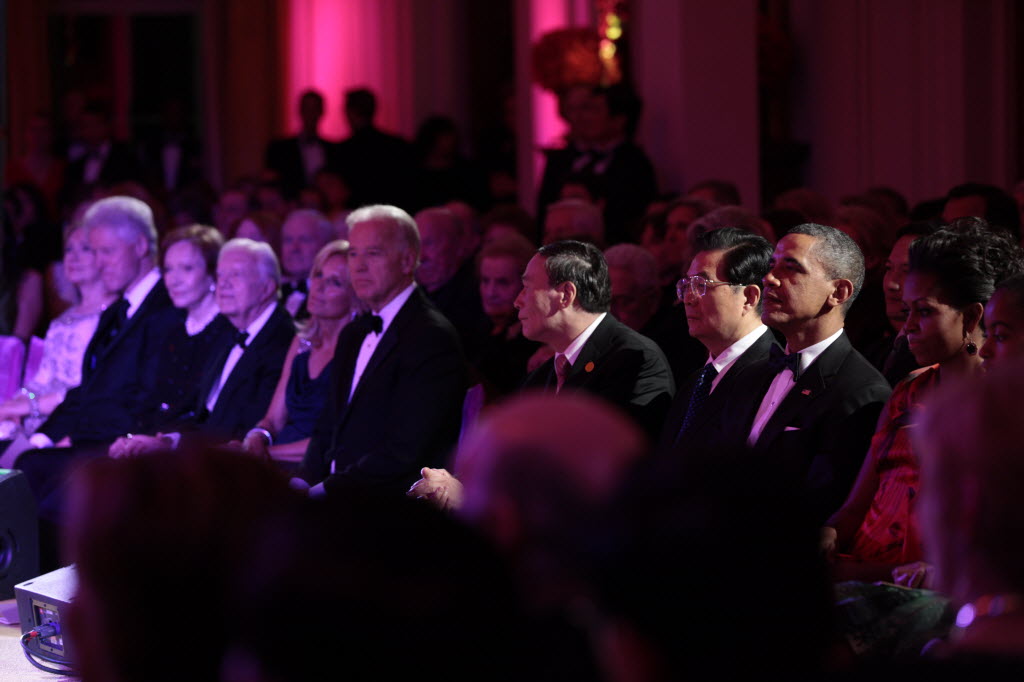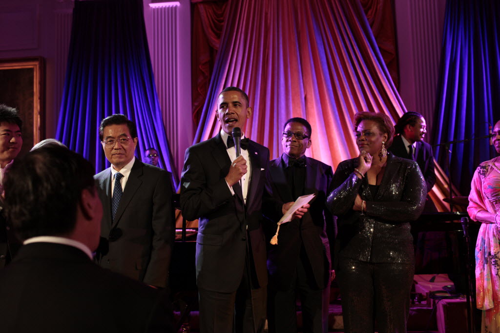 There are photos of President Jintao’s arrival; a private reception in the Yellow Oval Room; greeting guests in the Grand Foyer; President Obama and Prime Minister Sign delivering toasts; and performances by Herbie Hancock, Lang Lang, Chris Botti, Dee Dee Bridgewater, Peter Martin and Dianne Reeves.