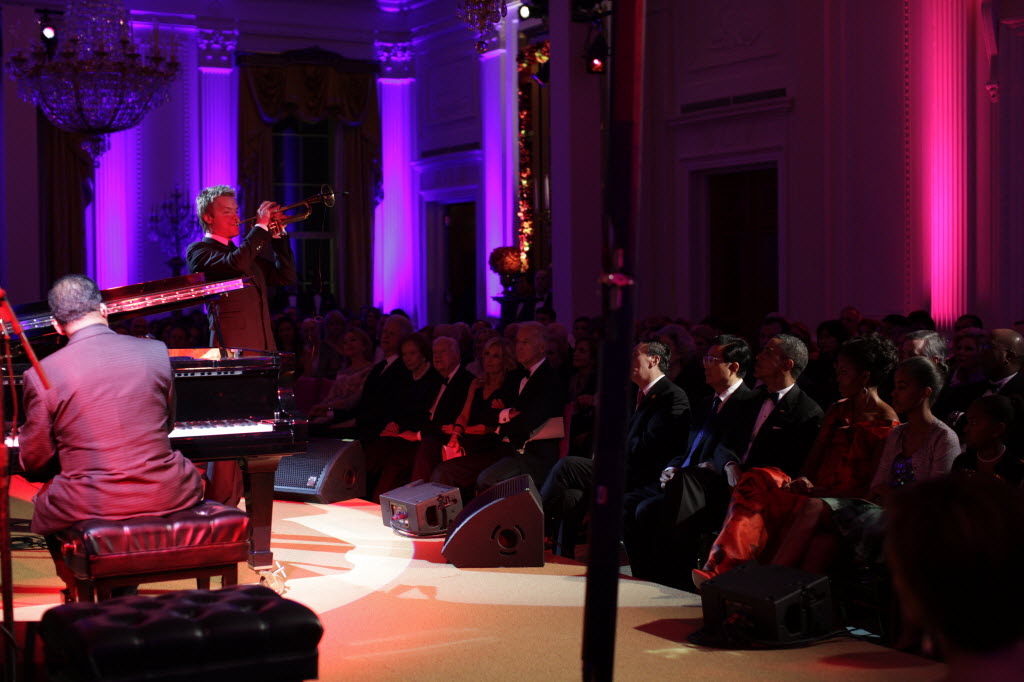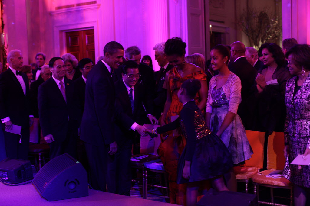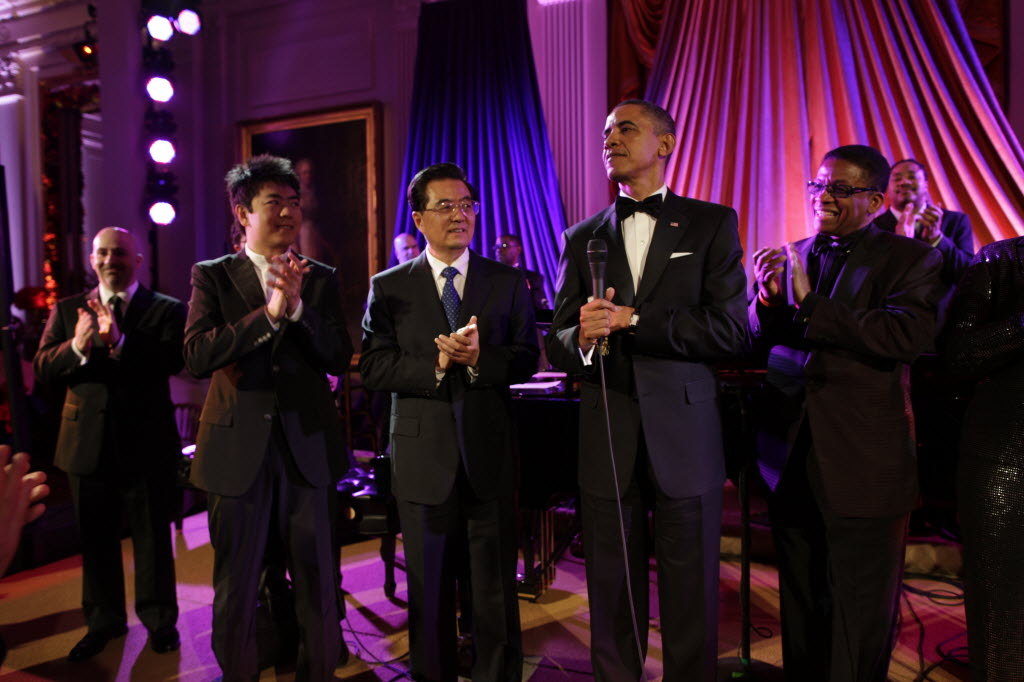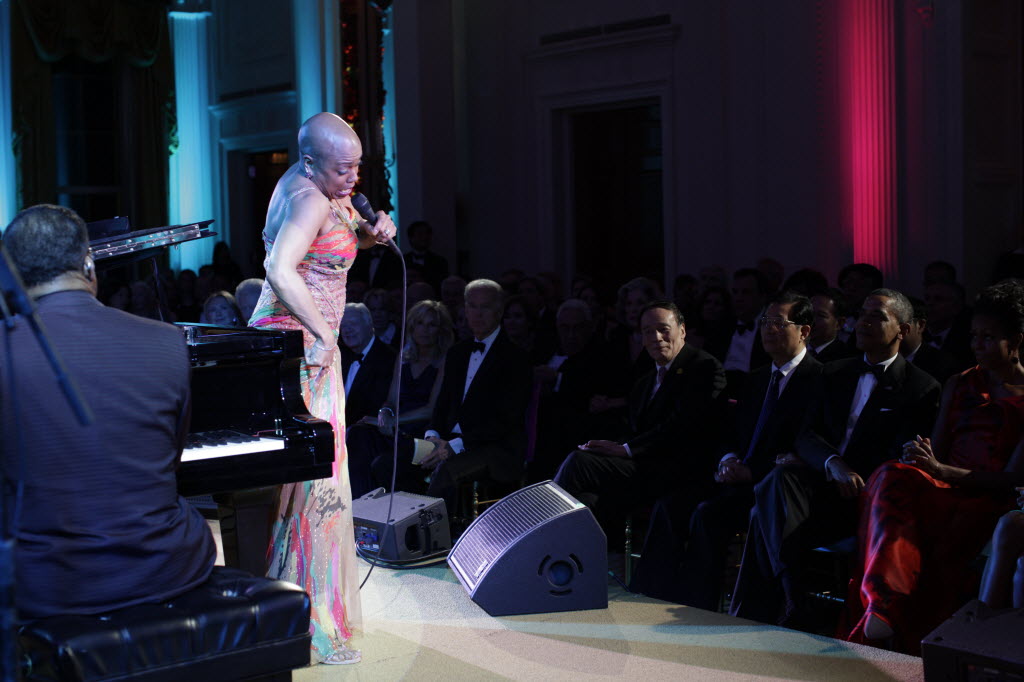 There are photos of President Jintao’s arrival; a private reception in the Yellow Oval Room; greeting guests in the Grand Foyer; President Obama and Prime Minister Sign delivering toasts; and performances by Herbie Hancock, Lang Lang, Chris Botti, Dee Dee Bridgewater, Peter Martin and Dianne Reeves.
