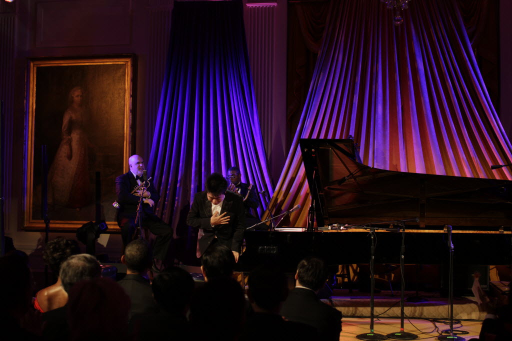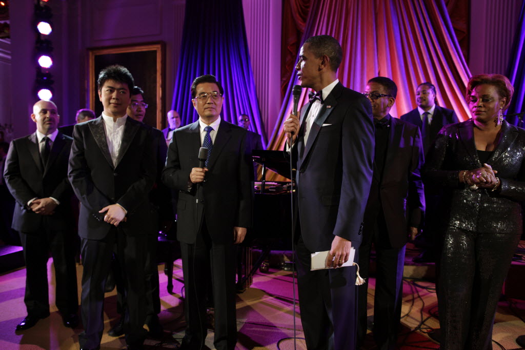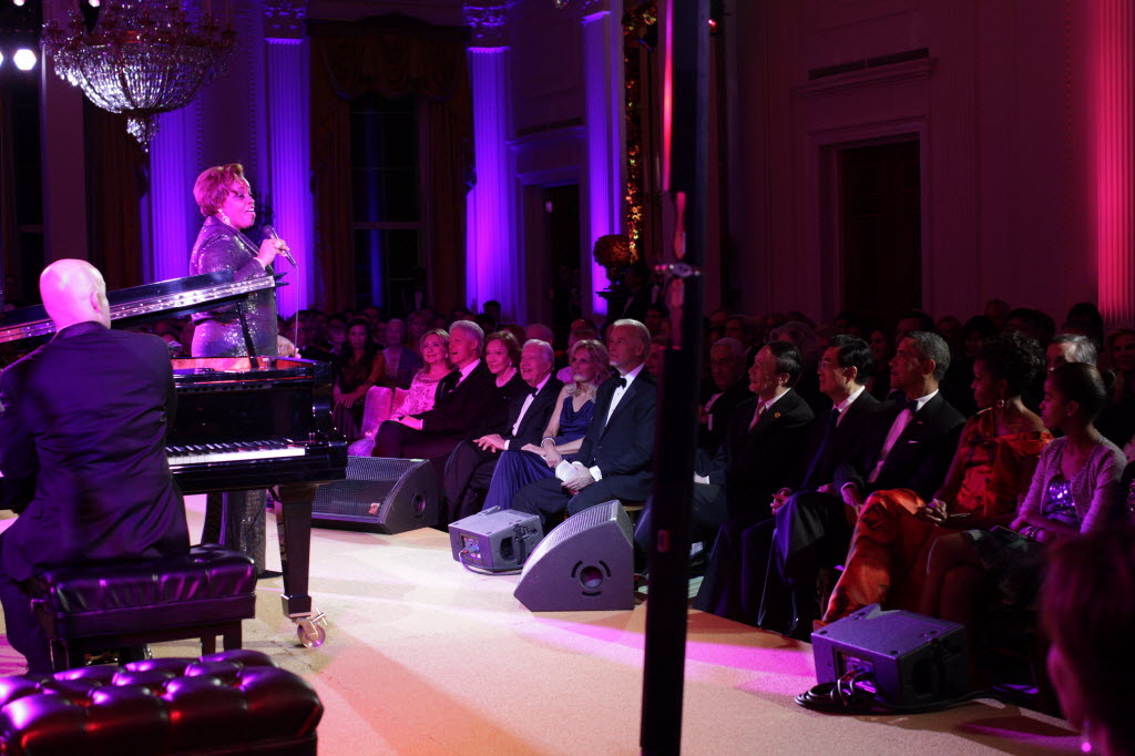 There are photos of President Jintao’s arrival; a private reception in the Yellow Oval Room; greeting guests in the Grand Foyer; President Obama and Prime Minister Sign delivering toasts; and performances by Herbie Hancock, Lang Lang, Chris Botti, Dee Dee Bridgewater, Peter Martin and Dianne Reeves.
