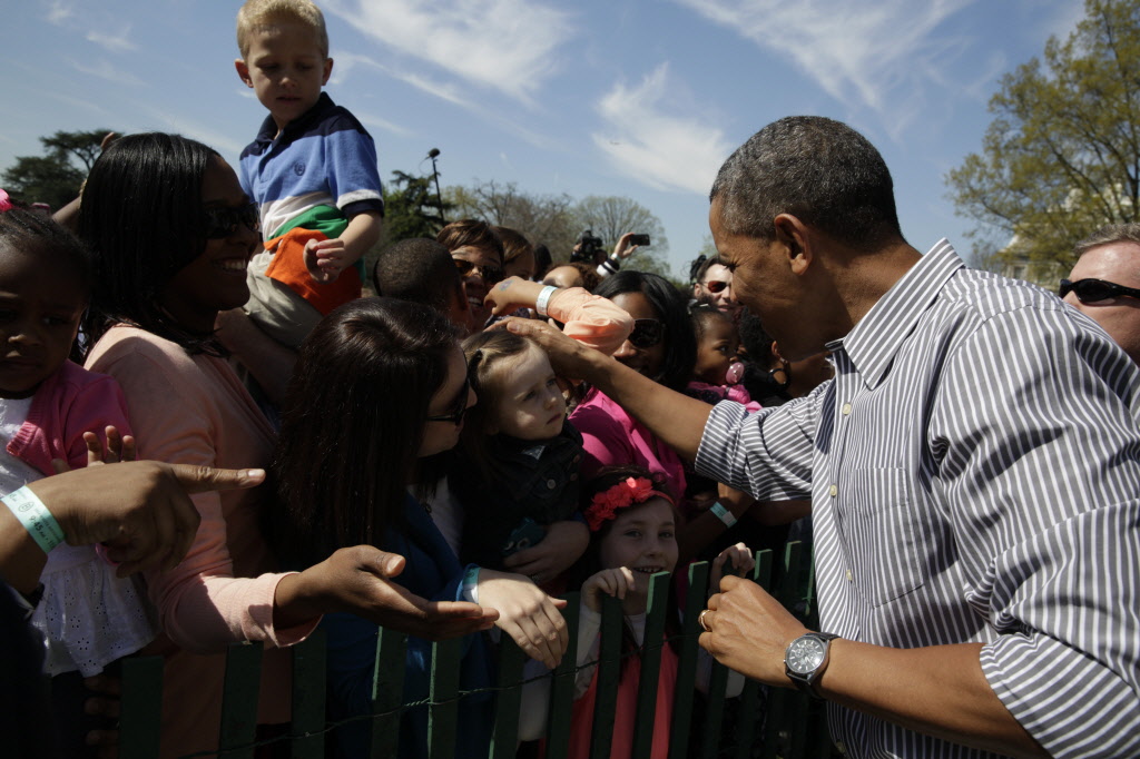 Each year, the Obama Administration hosted an Easter Egg Roll on the South Lawn of the White House. The President and First Lady welcomed, greeted, and cheered on the participants, read to children, and participated in the events.